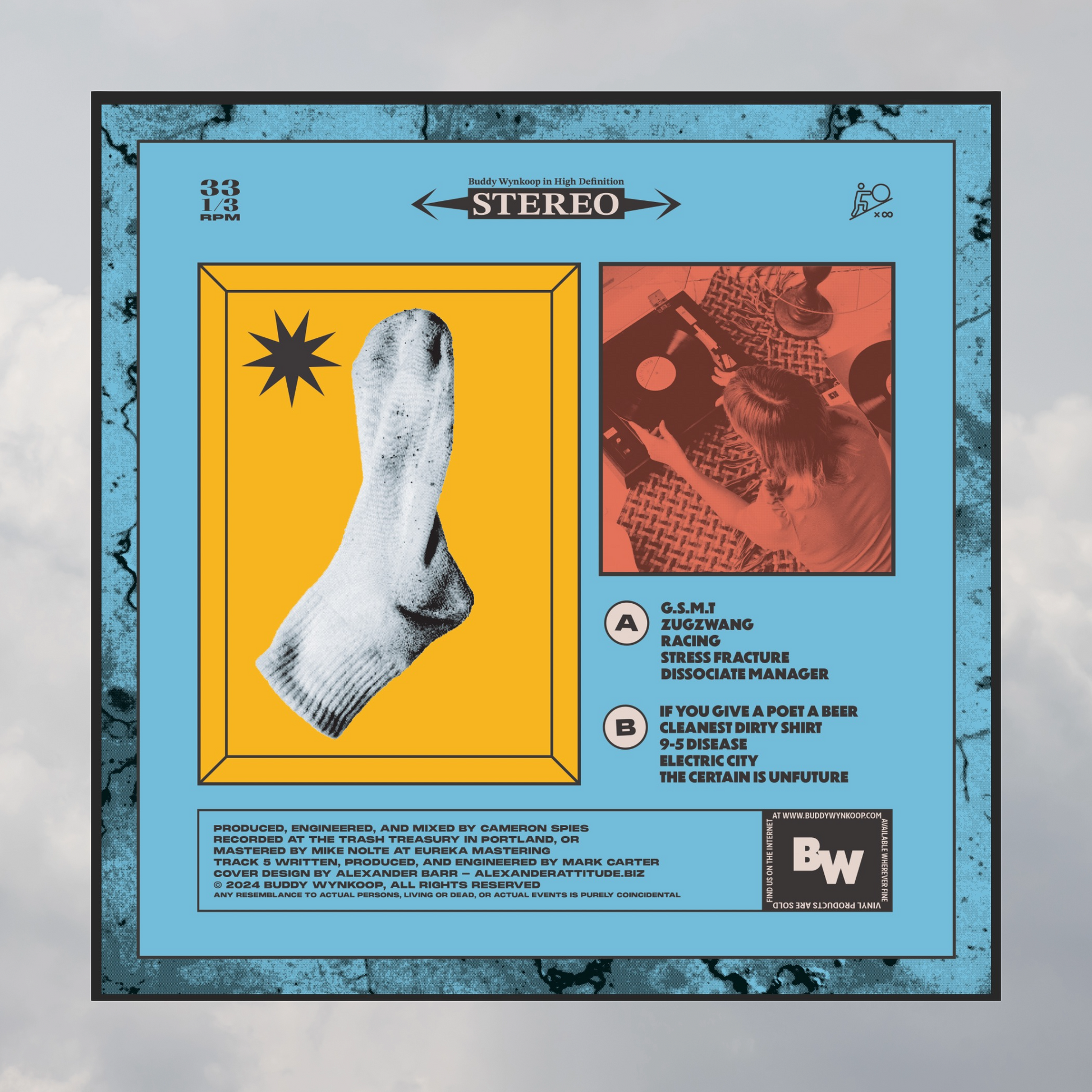 Portland art-punk outfit Buddy Wynkoop presents their debut full-length album, Better Than Botox. Pressed on classic 12" black vinyl, this record captures the band’s signature mix of shout-sung hooks, spoken-word grit, and angular guitars—a sound described as “Aggressive Devo”